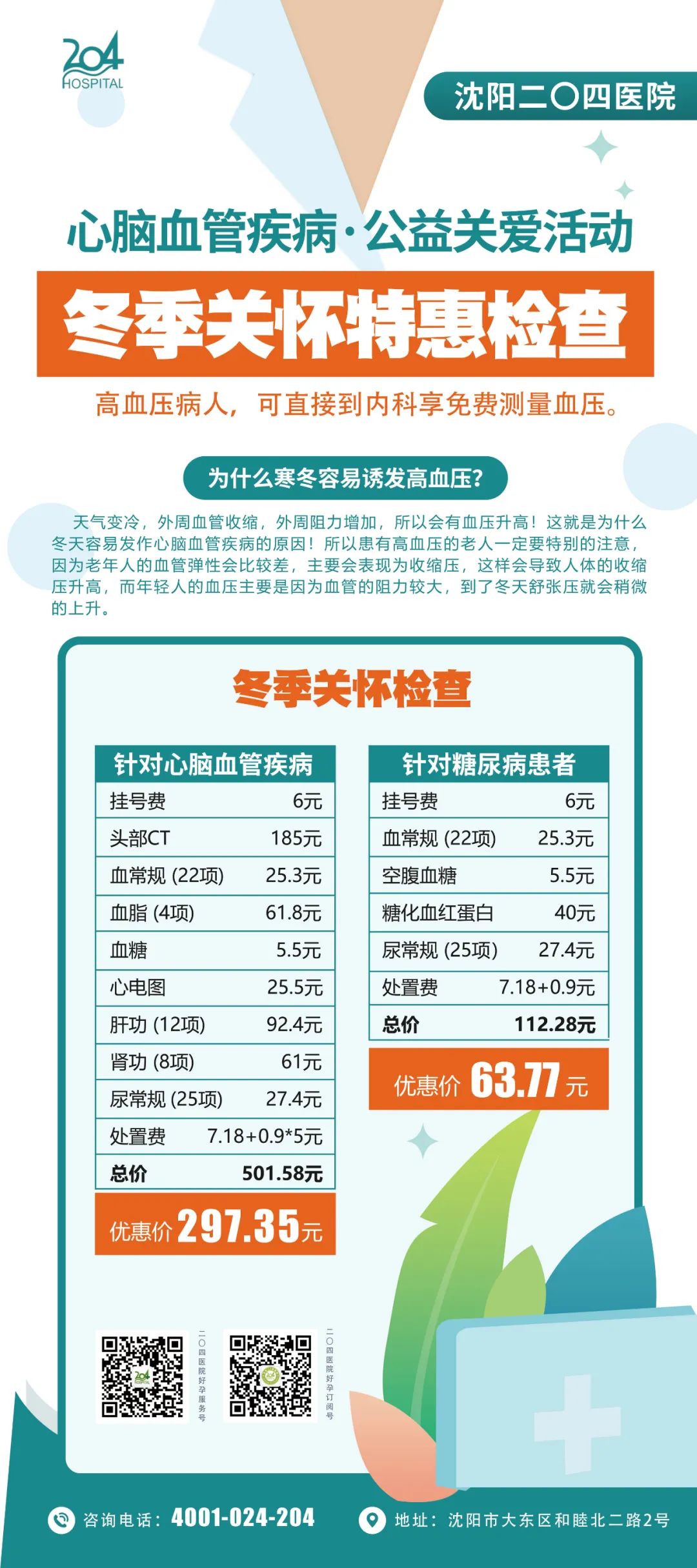 沈阳二〇四医院公益关爱活动及冬季关怀特惠套餐!