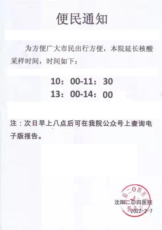 沈阳二〇四医院生殖科关于调整服务时间的通知